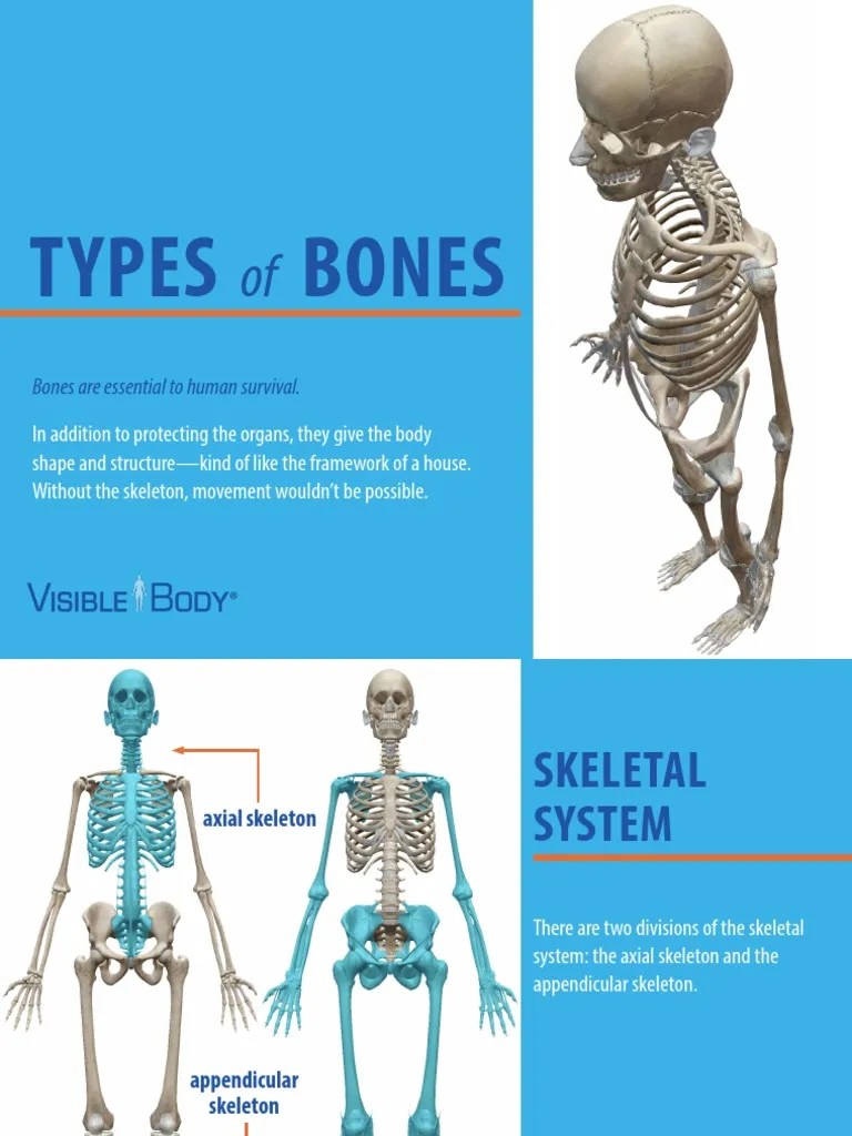 These bones can be grouped in two divisions: The two divisions of the skeletal system are the axial skeleton and the appendicular skeleton. Like that of other vertebrates, consists of two principal subdivisions, . They include the bones of the: Unlike most primates, human males do not have penile bones. Muscles throughout the human body are attached to bones. The cranium forms the entire upper portion of the skull. These bones are arranged into two major divisions: Division of skeleton • the 80 bones of the axial skeleton form the vertical axis of the body. When the nervous system sends commands to . Nerves around a muscle can signal the muscle to move. There are two main divisions of the skeletal system: Axial skeleton has skull, vertebral column, .